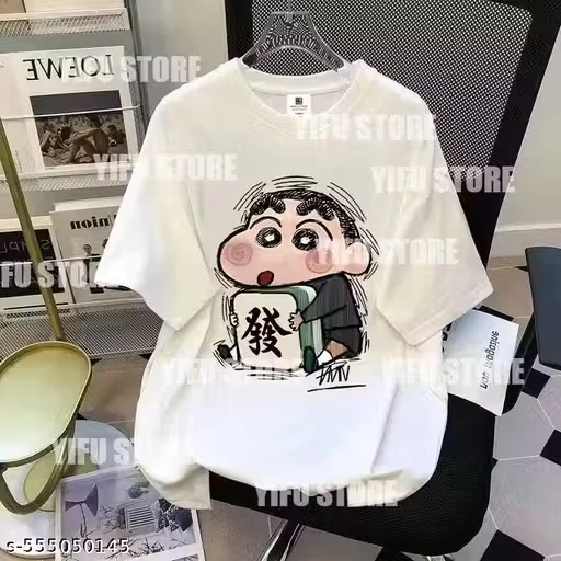 Show your playful side with this fun Shin-chan Crayon Shin-chan graphic tee! This t-shirt features a humorous image of Shin-chan holding a block with the Chinese character "發" (Fā), a symbol often associated with good fortune, prosperity, or getting rich. The shirt is designed with a comfortable oversized, drop-shoulder fit, making it perfect for a relaxed, streetwear look. Made from soft cotton, it's an ideal piece for anime fans and those who love unique, vibrant graphic apparel.